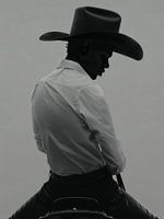Cowboy, contemporary art. In zwart-wit, prachtig in heel groot formaat. Met dit werk maak je echt een statement in je interieur!