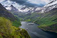 Koop dit landschapskunstwerk Cruiseschip in het Geirangerfjord, Noorwegen van Rietje Bulthuis op canvas, aluminium dibond, (ingelijste) fotoprint, behang en ArtFrame, op maat geprint in Fine-Art kwaliteit.