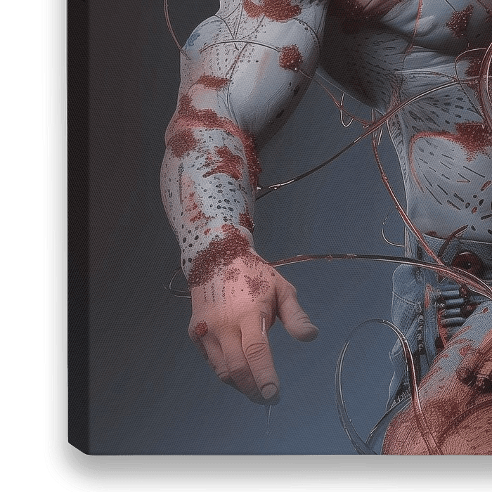 Stel je voor: een krachtig en intrigerend kunstwerk dat de zintuigen prikkelt met de afbeelding van twee dansende bodybuilders, die de mysterieuze uitstraling hebben van wezens die te lijken zijn opgestaan uit de dood. Tegen een neutrale grijze achtergrond, die de scène een bijna etherische kwaliteit geeft, komen deze figuren tot leven…
