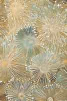 Dit werk vangt de aandacht met een compositie van stralende lichtpatronen, die doen denken aan een explosie van vuurwerk of dansende sterren aan de nachtelijke hemel. De zachte tinten van blauw, wit en goud vloeien harmonieus samen, waardoor een serene en feestelijke sfeer ontstaat. De cirkelvormige elementen stralen in verschillende…