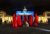 De Brandenburger Tor Berlin in een bijzonder licht, ter gelegenheid van een lichtfestival in de Duitse hoofdstad. Enkele lichtsculpturen maken het festival op de Pariser Platz compleet.