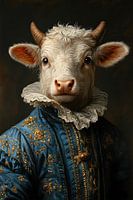 Koop dit koeien kunstwerk De Elegante Koe: Een Verbluffende Mix van Historische Mode en Dierenrijk van But First Framing op canvas, aluminium dibond, (ingelijste) fotoprint, behang en ArtFrame, op maat geprint in Fine-Art kwaliteit.