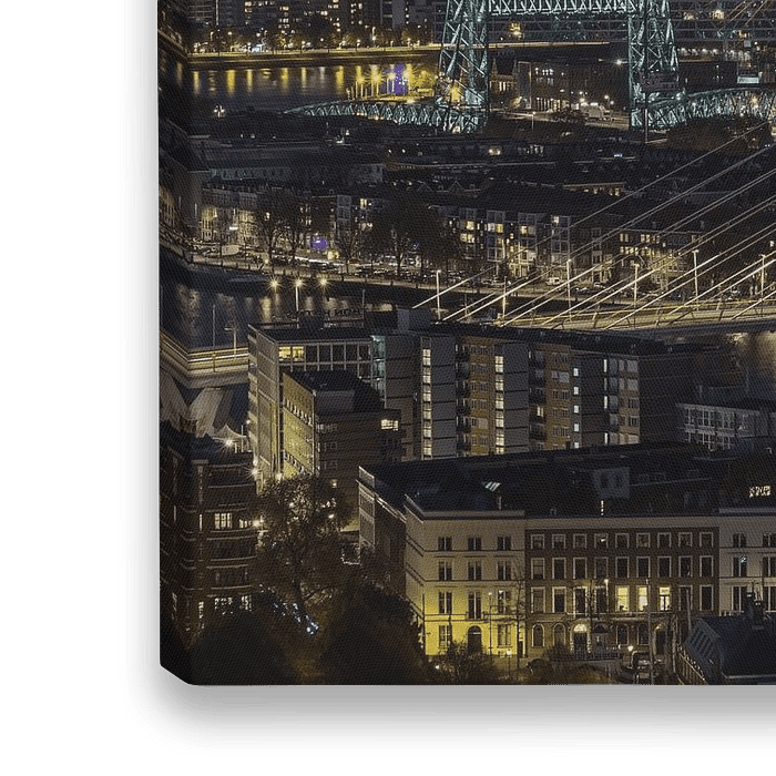 De Erasmusbrug in Rotterdam in kleur goud met vuurwerk speciaal voor Werk aan de Muur - 10 years of art. Dit werk is onderdeel van de fotocollectie van MS Fotografie. Klik rechts op "Alle werken" om meer werken uit de collectie te zien.