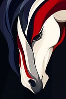 Een ingetogen kracht straalt uit dit abstracte paardenhoofd. Met zijn gebogen hals en elegante vormen lijkt het paard bijna in beweging, alsof het zich met sierlijke gratie voorbereidt op een volgende stap.