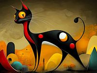 Haal een vleugje mysterie en verfijning in huis met deze unieke abstracte weergave van een vrouwelijke kat. Deze sierlijke lapjeskat in warme tinten zwart en rood trekt meteen de aandacht met haar uitdagende en liefdevolle blik.