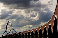 De brug 'de Oversteek' over de Waal, in Nijmegen. Met woeste wolkenlucht.