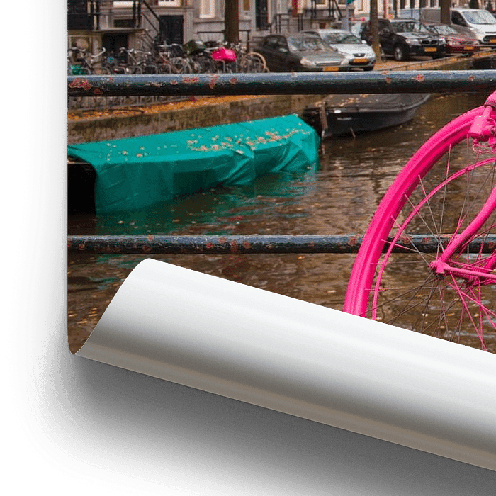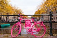 Koop de foto De Roze Fiets in Amsterdam op een brug in de hoofdstad. van Brian Morgan als print op canvas, aluminium dibond, (ingelijste) fotoprint, behang en ArtFrame. Voor jou op maat geprint in Fine-Art kwaliteit.