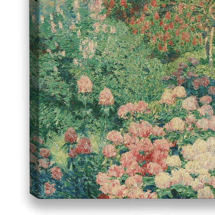 Koop De bloementuin in mei, Emile Claus als reproductie op canvas, aluminium dibond, (ingelijste) fotoprint, behang en ArtFrame, op maat geprint in Fine-Art kwaliteit.