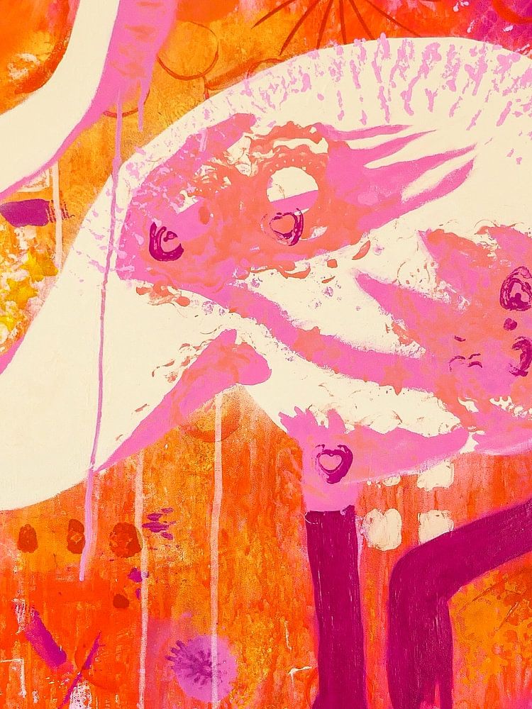 Modern acrylschilderij van een flamingo. Geen AI kunstwerk.