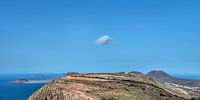 De uiterste noordpunt van het Spaans/Canarische eiland Lanzarote met op de achtergrond het kleine bij-eilandje La Graciosa en slechts een klein wolkje in de lucht.