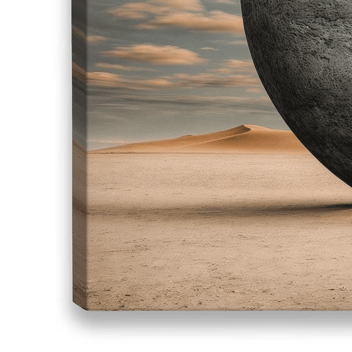 Midden in een uitgestrekt, dor woestijnlandschap rijst een kolossale stenen monoliet op in de vorm van een perfecte bol. Een scheur in het oppervlak onthult een adembenemend geheim: het binnenste herbergt een levend sterrenstelsel, een wereld vol sterren, nevels en mysterieuze energie. In het centrum van de onthulde kosmos zweeft een…