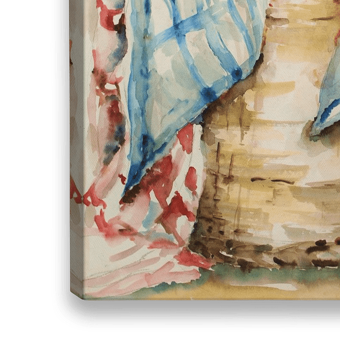 Een stilleven van een rieten wasmand gevuld met theedoeken en handdoeken , geschilderd met aquarel. De was is altijd een onderdeel van het huishouden. Misschien dan ook wel leuk om dit bij de wasmachine of in het washok te hangen, geeft een beetje fleur aan deze bezigheid.