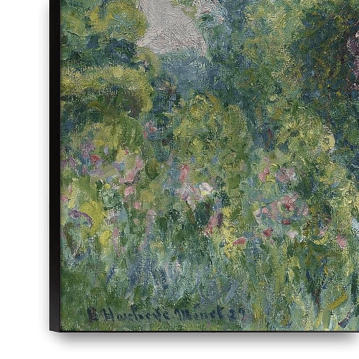 Koop De rozentuin in Giverny (Monet's huis), Blanche Hoschedé-Monet als reproductie op canvas, aluminium dibond, (ingelijste) fotoprint, behang en ArtFrame, op maat geprint in Fine-Art kwaliteit.