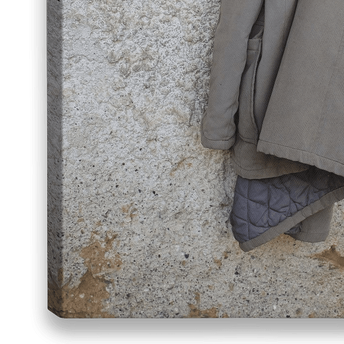In een ruïne van een huis, ergens in Europa, hangt deze jas aan de muur. Ooit zat er een dak op deze kamer, maar dat is helemaal ingestort. De jas hangt nu in weer en wind, overgeleverd aan de krachten van de natuur...