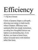 Efficiëntie beschrijft een duidelijk pad waarin energie doelgericht wordt gebruikt. Deze typografische poster realiseert de betekenis van de term in een rustig, minimalistisch ontwerp.