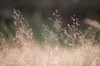 De kleine tere bloemaren en bloempluimen van Poa annua ook bekend als straatgras in close-up. Prachtige botanische natuurfotografie in zachte pastelkleuren.