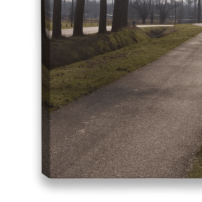 Dit landschapstafereel van de Dendervallei toont de vredige schoonheid van de Dender in Idegem, vlakbij Geraardsbergen in Oost-Vlaanderen, België. De zachte wintertinten van het landschap vermengen zich harmonieus met de lichtblauwe lucht. De kronkelende rivier meandert door het winterlandschap en creëert een gevoel van rust en kalmte dat typisch is voor het platteland in het Vlaamse Pajottenland.