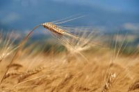 Foto van een tarwe veld in Frankrijk met de focus op een aar. Graanschuur van Europa.
