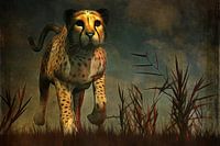 Koop dit landschapskunstwerk Dierenrijk – Cheetah komt recht naar je toe tijdens de jacht van Jan Keteleer op canvas, aluminium dibond, (ingelijste) fotoprint, behang en ArtFrame, op maat geprint in Fine-Art kwaliteit.