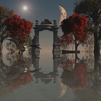 Koop dit landschapskunstwerk Dierenrijk – Uil op jacht in een surrealistisch landshap van Jan Keteleer op canvas, aluminium dibond, (ingelijste) fotoprint, behang en ArtFrame, op maat geprint in Fine-Art kwaliteit.