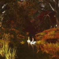 Koop dit landschapskunstwerk Dierenrijk – Zwanen in het bos van Jan Keteleer op canvas, aluminium dibond, (ingelijste) fotoprint, behang en ArtFrame, op maat geprint in Fine-Art kwaliteit.