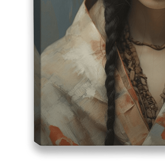 Digital art portret "Nomad", geïnspireerd door de traditionele Native Americans. Maak dit werk helemaal passend voor jouw interieur door zelf de afmetingen en het materiaal te kiezen. Heel gaaf in groot formaat!