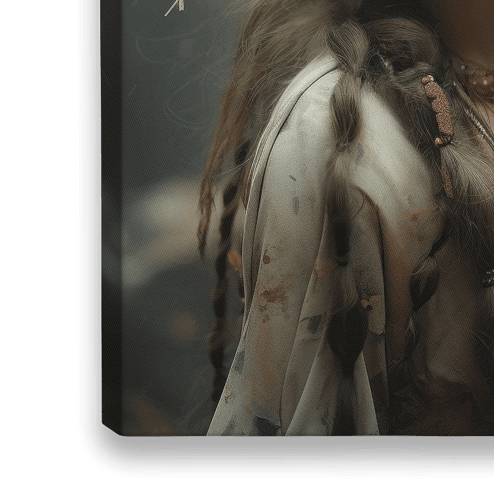 Digital art portret "Nomad", geïnspireerd door de traditionele Native Americans. Maak dit werk helemaal passend voor jouw interieur door zelf de afmetingen en het materiaal te kiezen. Heel gaaf in groot formaat!