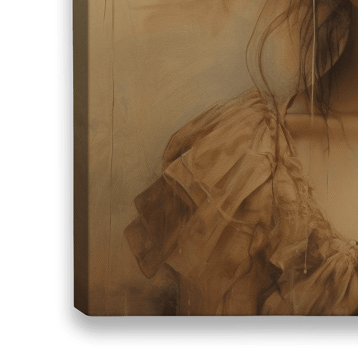 Digital art portret in aardetinten. Kies zelf het formaat en het materiaal waarop je dit werk laat afdrukken en pas het helemaal aan naar jouw wens zodat het perfect in jouw interieur past. Dit is een echte blikvanger!