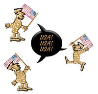 Donut filled United States sports fans yell “USA. USA, USA” van Grüntyers .