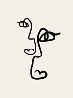 Minimalistisch portret, betaalde uit 1 vloeiende lijn. Zwart met een wit accent.