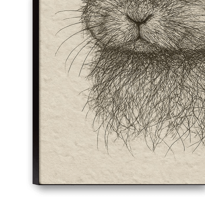 Het portret straalt rust en tederheid uit, ideaal voor wie houdt van natuur, lentegevoel of charmante dierenportretten. Denk aan een kinderkamer, leeshoek of Scandinavisch interieur waar zachtheid en eenvoud samenkomen.