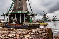 Drie molens in Zaanse Schans met een dreigende lucht op de achtergrond. Een typisch Hollands plaatje.