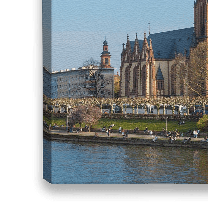 Driekoningenkerk gelegen aan de rivier Main, Frankfurt am Main, Hessen, Duitsland