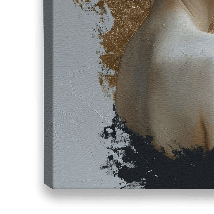 Dromerig portret met goud in de achtergrond. Bijzondere blikvanger waar je naar blijft kijken. Kies zelf het formaat en materiaal voor dit werk en maak het helemaal passend voor jouw interieur.