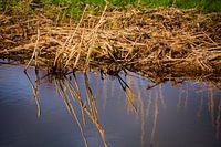 Een sloot met daar langs riet en een zonnetje voor het licht, dat is alles wat je nodig hebt voor een mooie foto. Het droge riet weerspiegelt in de sloot.