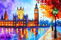 Big Ben en de Houses of Parliament in Londen in de stijl van een impressionistisch schilderij