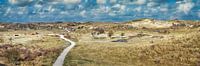 Een panorama beeld van het duinlandschap Nationaal Park Zuid Kennemerland. Welke zich bevind in de provincie Noord-Holland. Een mooi weids natuurbeeld van dit landschap in de duinen. Met ook de Schotse Hooglanders.