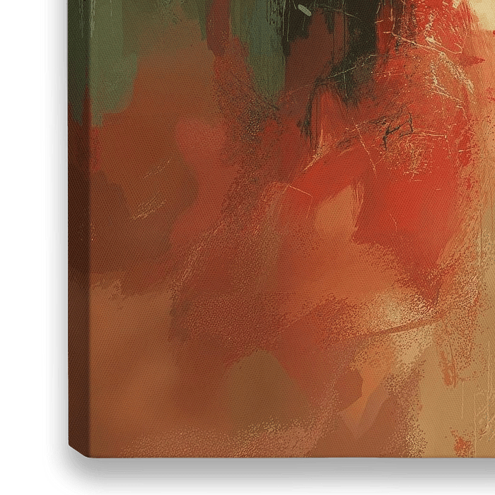 Echoes of Movement - Dit abstracte vrouwen schilderij toont drie gestileerde figuren die als silhouetten tegen een achtergrond van rijke, levendige kleuren en expressieve penseelstreken verschijnen. De figuren, van gemiddelde grootte en schijnbaar vrouwelijk, zijn gekleed in rode en zwarte kleding, wat krachtig afsteekt tegen de…