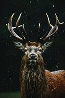 Edelhert in de Stortregen: Een Portret van Kracht van Art & Soul Creations