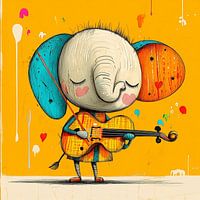 Koop dit abstracte kunstwerk Een Muzikale Olifant in Vrolijke Kleuren van Karina Brouwer op canvas, aluminium dibond, (ingelijste) fotoprint, behang en ArtFrame, op maat geprint in Fine-Art kwaliteit.