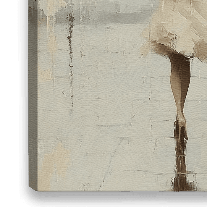 Een dag in Rome, abstract portret van een vrouw met paraplu in neutrale kleurtinten. Een bijzondere blikvanger voor je interieur!