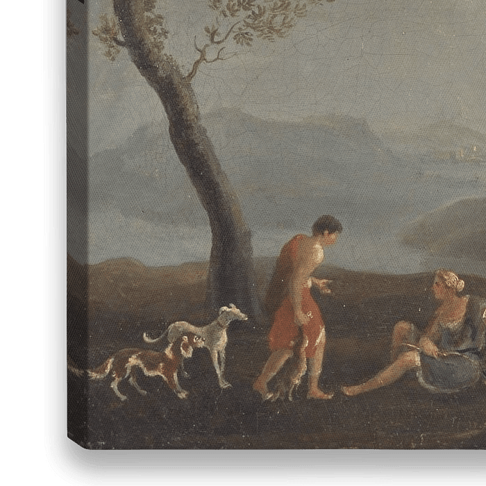 Koop Een denkbeeldig Italianiserend landschap met klassieke figuren en een waterval, Thomas Jones als reproductie op canvas, aluminium dibond, (ingelijste) fotoprint, behang en ArtFrame, op maat geprint in Fine-Art kwaliteit.