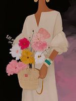 Soms zit schoonheid in het kleinste gebaar. In dit werk zie je een hand die een mand met een kleurrijk boeketje vasthoudt – geen overdaad, geen poespas. De achtergrond is zacht en warm, de bloemen spreken voor zich. Dit is een ode aan tederheid, aandacht en die momenten waarop je stiekem even stilvalt. Perfect voor wie houdt van…