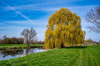 Een mooie wilg aan de oever van de Unstrut onder een blauwe lentehemel
