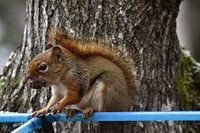 Een rode eekhoorn bij het esdoornbos van Claude Laprise