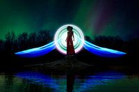 De techniek van schilderen met licht maakt het mogelijk om bijzondere lichtgevende vormen te creëren, zoals te zien is op deze prachtige foto.