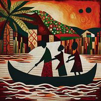 Koop dit abstracte kunstwerk Een visser met zijn kinderen aan boord van Jan Keteleer op canvas, aluminium dibond, (ingelijste) fotoprint, behang en ArtFrame, op maat geprint in Fine-Art kwaliteit.