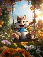 In dit levendige tafereel voor een kinderkamer straalt een vrolijke eekhoorn pure vreugde uit. Met sprankelende ogen en een brede glimlach op zijn snuitje, lijkt de eekhoorn bijna te dansen van blijdschap. Zijn zachte, pluizige vacht straalt warmte en knuffelbaarheid uit, waardoor het een uitnodigend en geruststellend beeld wordt. Deze…