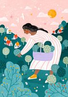 Koop dit vogel kunstwerk Een vrouw die bomen plukt van Bea Müller op canvas, aluminium dibond, (ingelijste) fotoprint, behang en ArtFrame, op maat geprint in Fine-Art kwaliteit.
