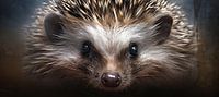 Egel - Dit digitale schilderij toont een close-up van een egel, met nadruk op zijn glanzende oog en fijne stekels. De textuur en kleuren zijn rijk en gedetailleerd, gedomineerd door bruin- en beigetinten met een suggestie van diepte en intimiteit.